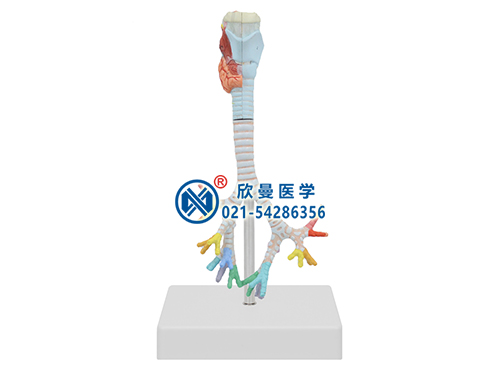 XM-552A喉与气管、支气管树模型由喉正中矢状切面等3部件组成,并显示气管、左右主支气管、肺段支气管等结构,共有45个部位数字指示标志和对应的文字说明。